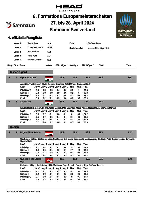 Im Frühling 2015 fanden die ersten Formations-Ski-Europameisterschaften in Samnaun statt.