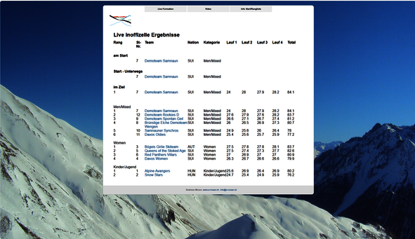 - Live Timing mit Team, Punkte, Zwischenrangliste