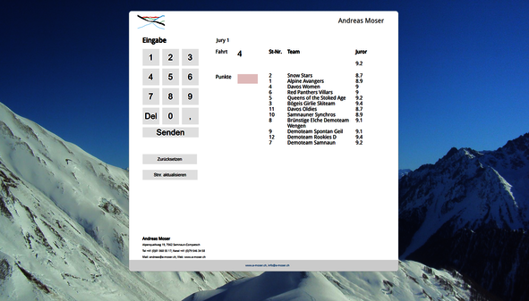 Die Jury vergibt die Punkte auf einem speziell dafür vorgesehenen IoT-Touchscreen. Zusätzlich besteht die Möglichkeit, die Punkte über das Smartphone direkt auf unserer Website einzugeben. Jeder Juror oder jede Jurorin kann somit flexibel und bequem seine Bewertung abgeben, egal ob er sich am Touchscreen oder unterwegs (z.B. Skipiste, Wettkampfplatz, Tanzbühne) befindet.<o:p></o:p>